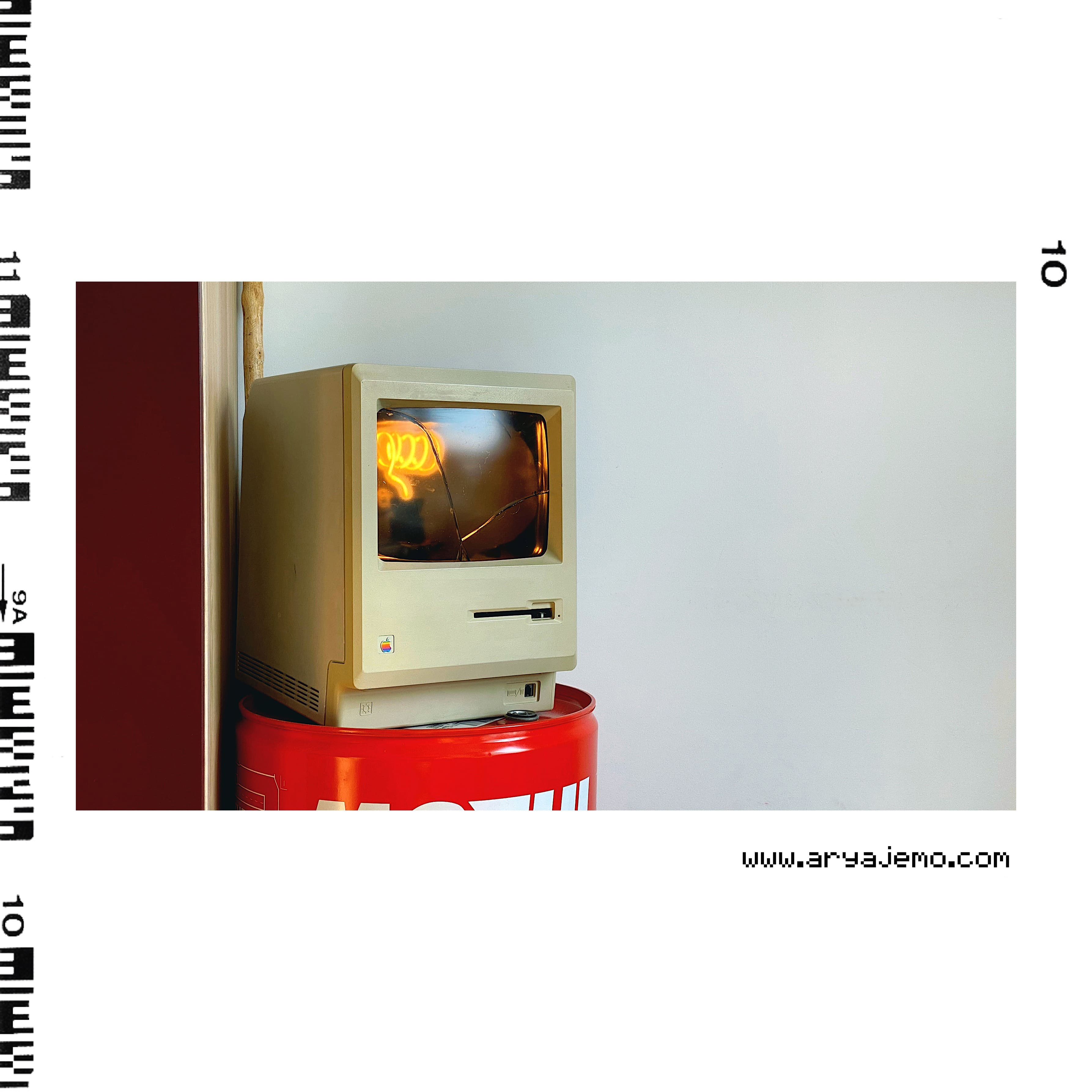 The Light of 1986 consists of a 1986 Macintosh Plus 1Mb. This particular model is over 36 years old. On the bottom of its case, you can find the engraved signatures of the various engineers who contributed to its creation, including Steve Jobs. It is akin to an architect leaving their mark on a building, a way to commemorate their name and achievement in human history. Instead of a traditional light bulb, the Macintosh itself represents the bulb, symbolizing the essence of light. This light symbolizes the intelligence of the human species.